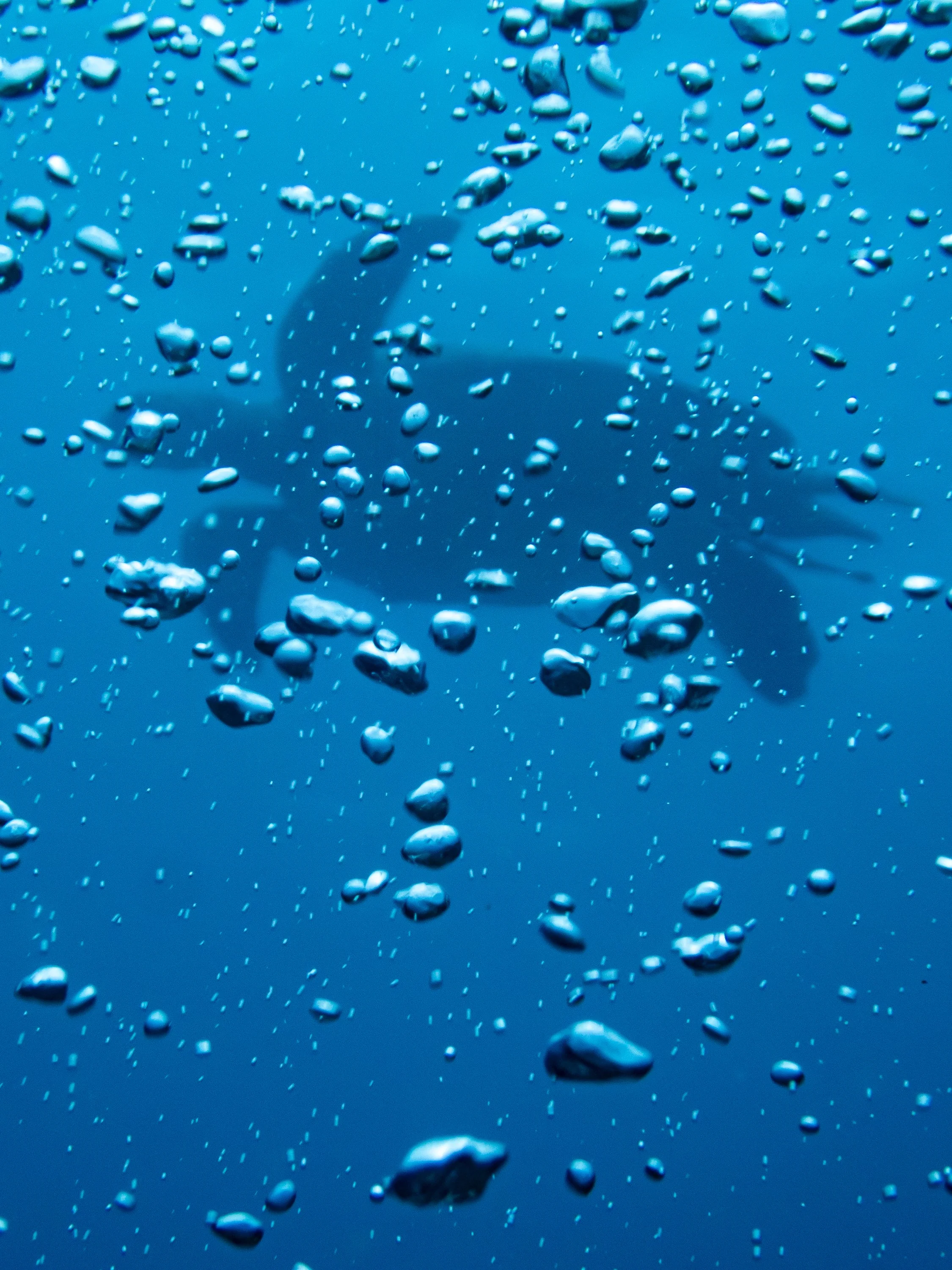 Bubbles underwater with a turtle silhouette in the background View fullsize